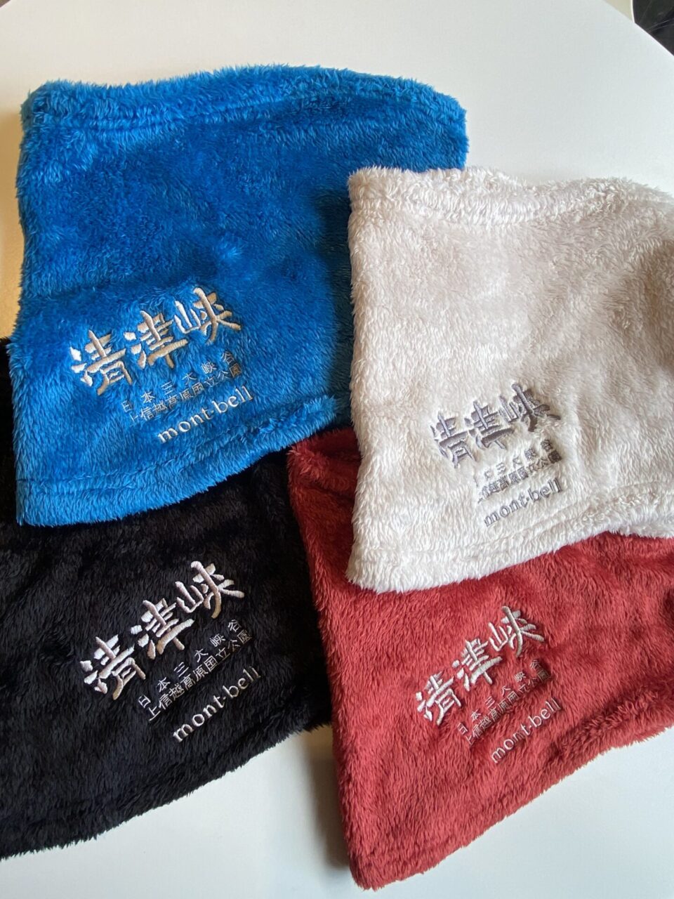 ④クリマエア ネックゲーター 【mont-bellロゴ上へ、『清津峡 日本三大峡谷 上信越高原国立公園』刺繍入り】
